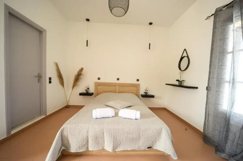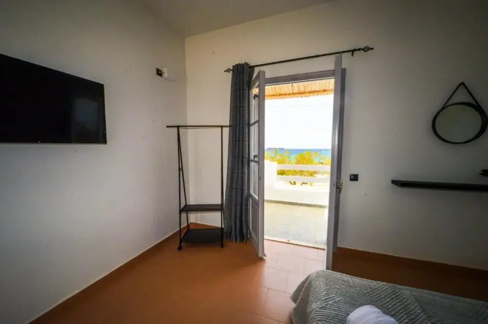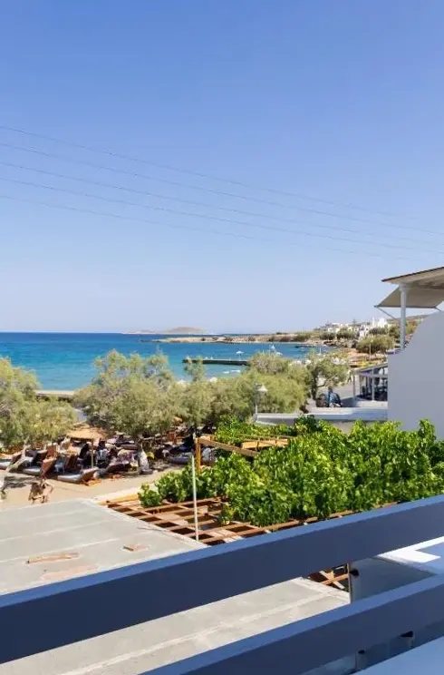 Wonderful place in front of a charming small beach but one of the most pleasant of the Ile in the shade of the tamarisk. Several delicacy nearby, a small conductor for snacks. Some bars with small concerts of Greek music. Very Greek family and quiet place. Pure happiness for rest stay.